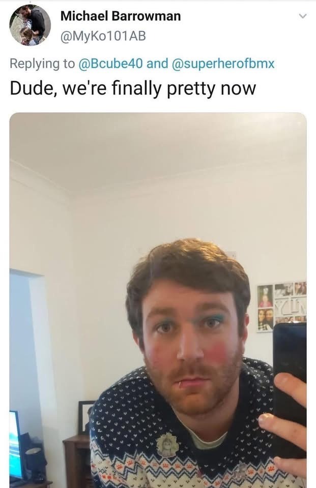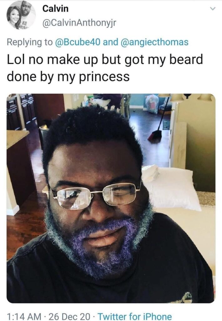 “Lol no makeup but got my beard done by my princess,” shared Calvin.