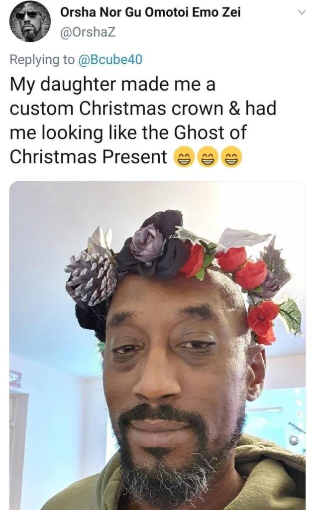 “My daughter made me a custom Christmas crown & had me looking like the Ghost of Christmas Present,” wrote Orsha Z.