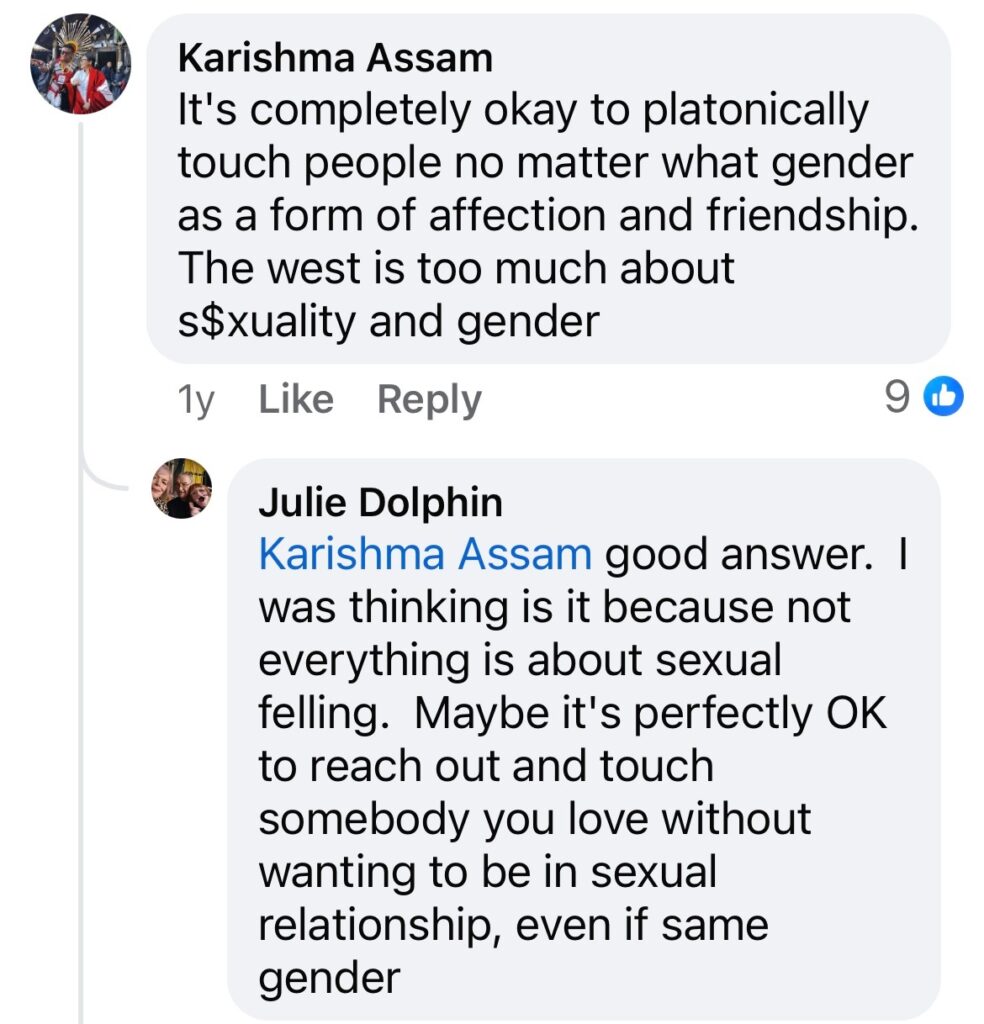 She highlighted how healthy platonic touch can be, regardless of gender. Her response stood out for its warmth, reframing affection as something human rather than something that needs labeling.