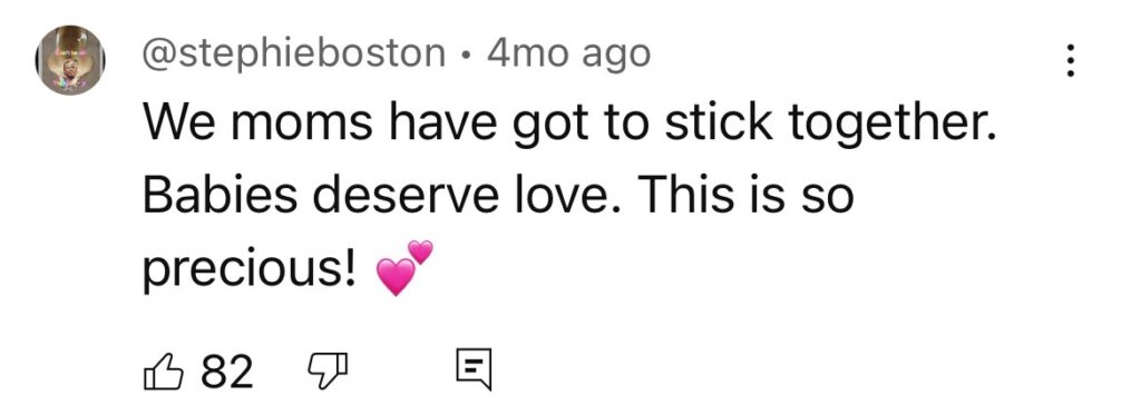 “We moms have got to stick together. Babies deserve love.”