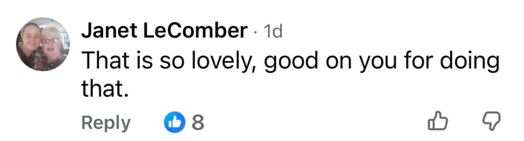 “That is so lovely, good on you for doing that.”