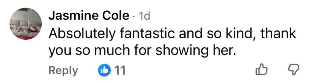 “Absolutely fantastic and so kind, thank you so much for showing her.”