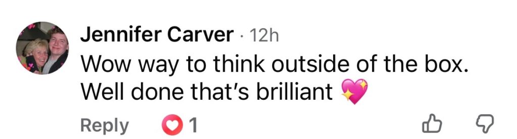 “Wow way to think outside of the box. Well done that’s brilliant.”