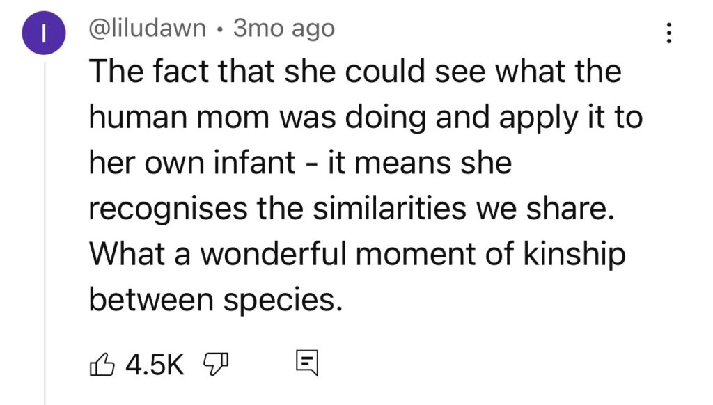 Across platforms, people weren’t just reacting to a cute moment, they were responding to what it symbolized: empathy, patience, and shared biology bridging species lines.