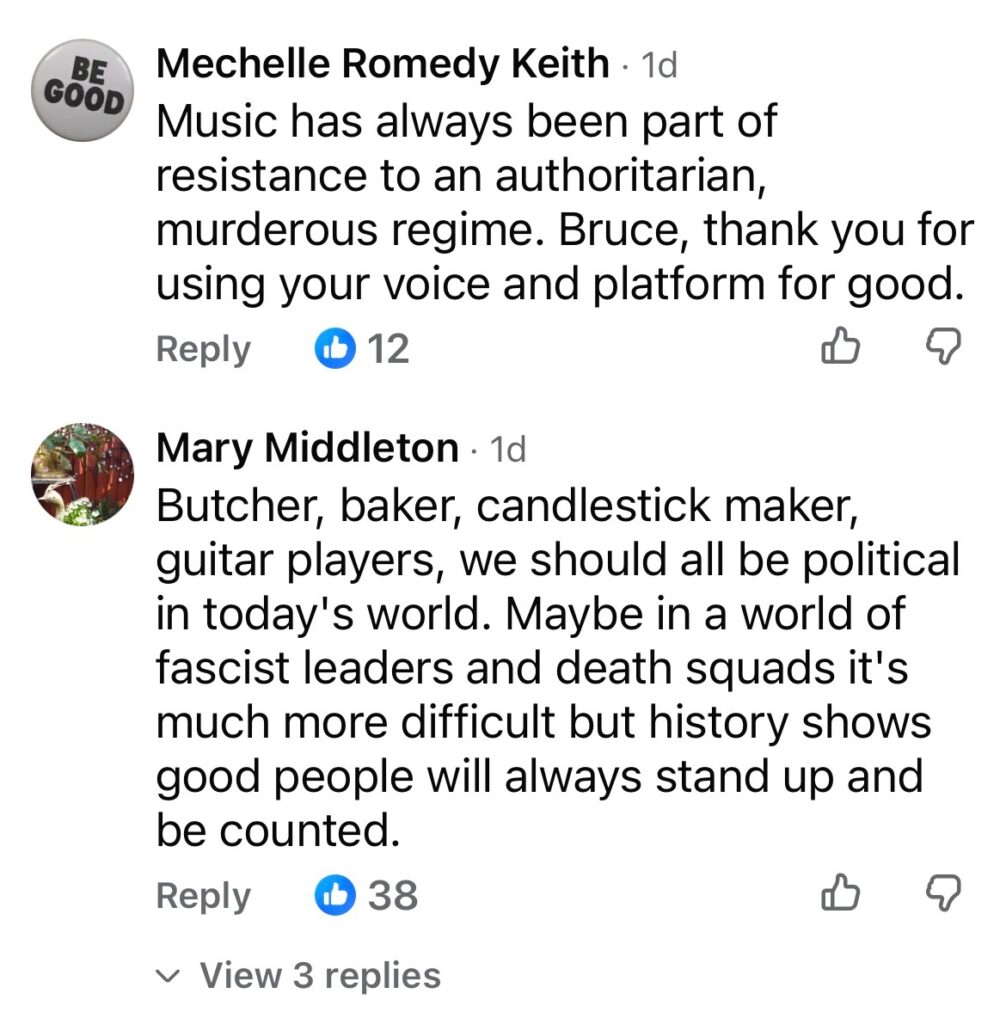 Springsteen’s fans and social commentators took to the internet in force, many expressing admiration for his willingness to speak out.