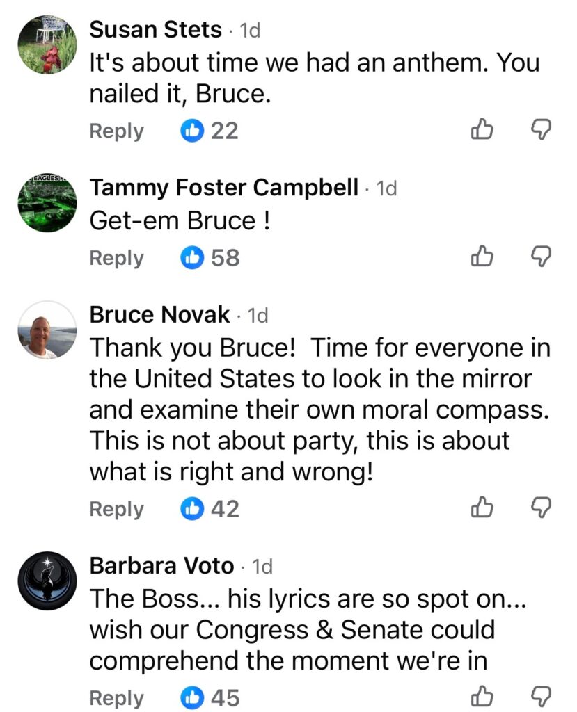Fans online have shared full lyric threads, performances, and reactions, some calling the song a generational anthem, others noting its directness compared with Springsteen’s earlier work.