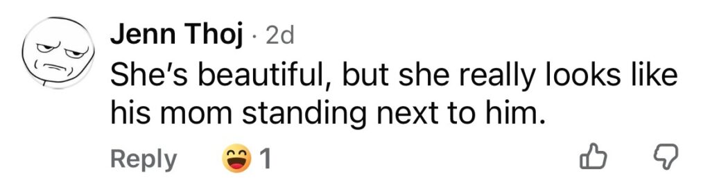 “She’s beautiful, but she really looks like his mom standing next to him.”
