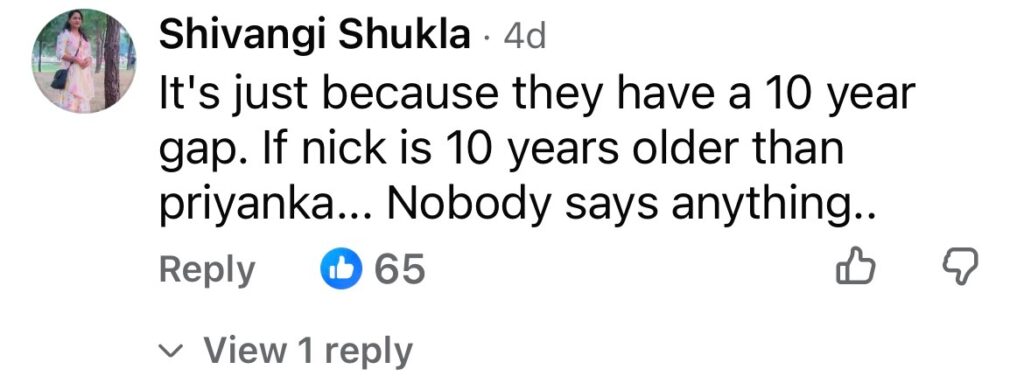 “It’s just because they have a 10 year gap. If Nick is 10 years older than Priyanka… nobody says anything.”