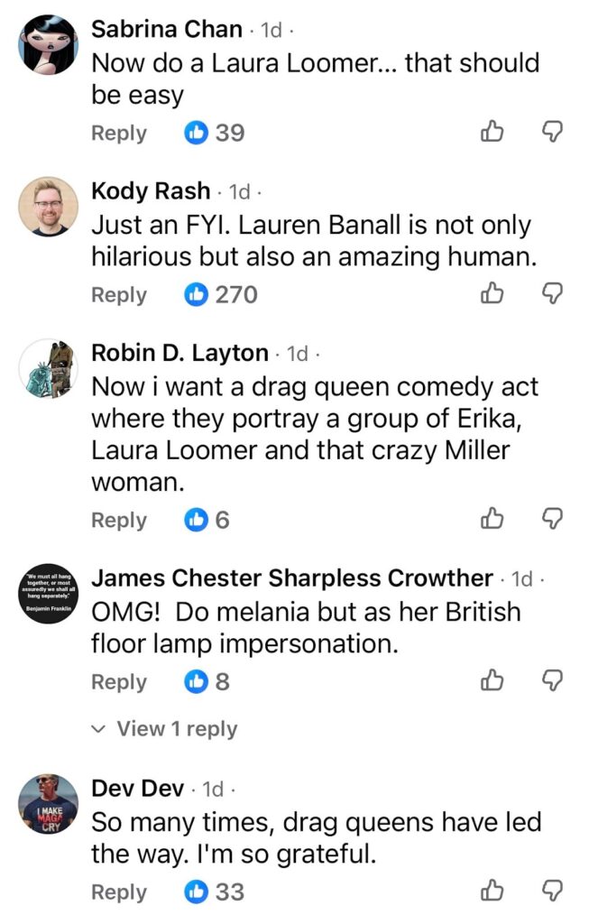• Drag performer Lauren Banall has gone viral for her satirical impersonations of Erika Kirk, the widow of political figure Charlie Kirk.