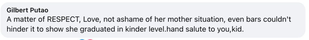 - A five-year-old girl visited a jail facility in Mindanao to show her incarcerated mother her kindergarten graduation attire.