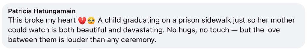 The footage shows a mother trying to reach through steel bars, and a child doing her best to stand tall in her graduation attire. It was brief. It was quiet. But it carried weight.