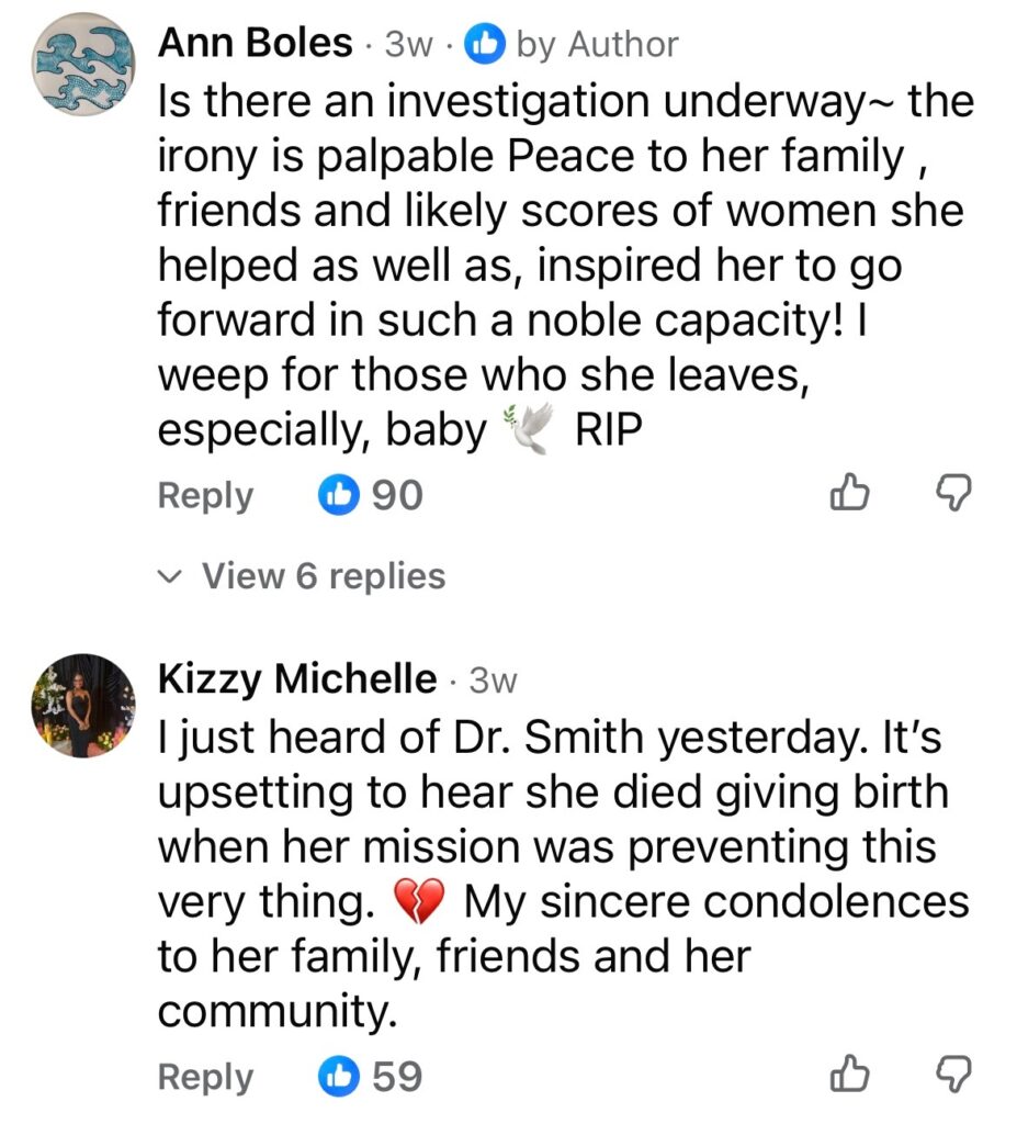 Across platforms like Instagram and Facebook, healthcare organizations, colleagues, and community groups posted tributes and calls for action, reaffirming commitments to Black maternal health advocacy and honoring Dr. Smith’s lifelong work.