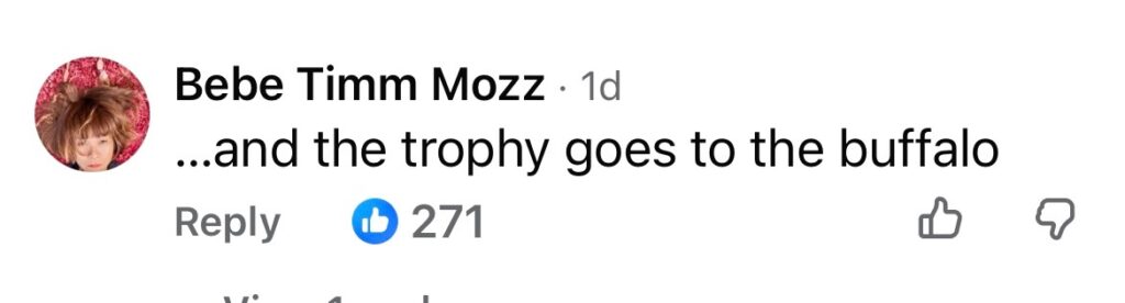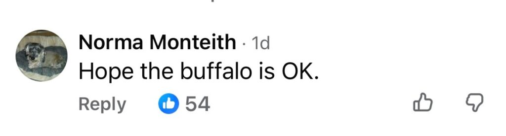 “Did the buffalo get to keep the head as a trophy? Xx.”