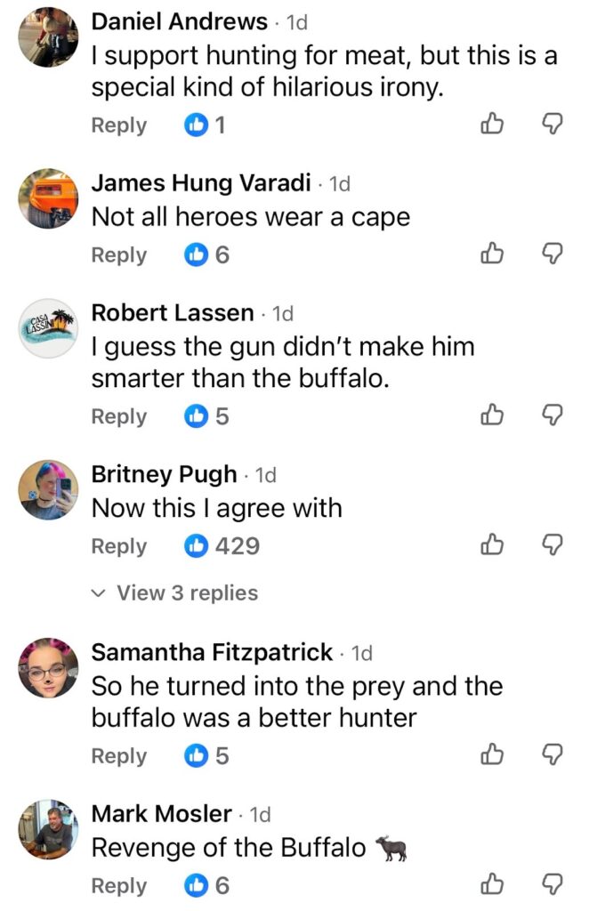 “I guess the gun didn’t make him smarter than the buffalo.”