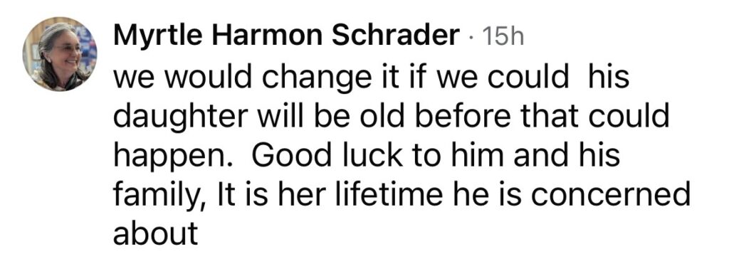 We would change it if we could. His daughter will be old before that could happen. Good luck to him and his family, it is her lifetime he is concerned about.