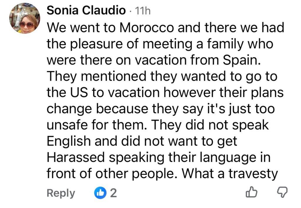 We met a family vacationing from Spain who said they canceled U.S. travel plans because it feels unsafe and they didn’t want to be harassed for speaking their language. What a travesty.