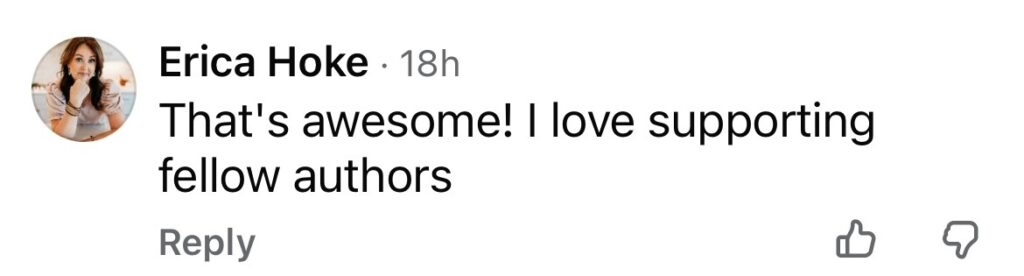 “That’s awesome! I love supporting fellow authors.”